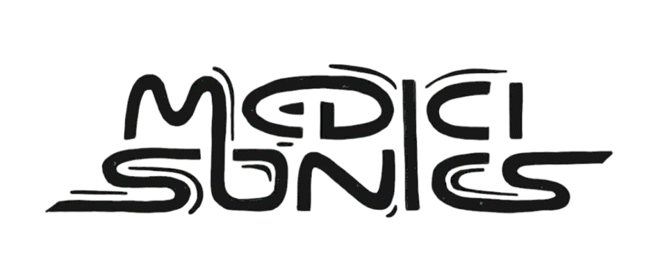 Developed two distinct sub-brands—Medici Sonics (music/audio) and Medici Graphics (visual design) with dedicated animated logotypes and tailored visual languages.