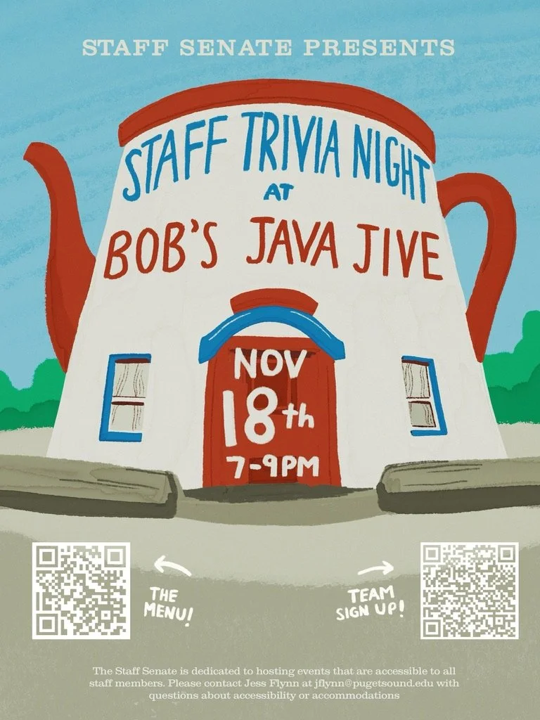 For the UPS Staff Senate, I created printed promotional posters and team name cards to support Senate events like the Plant Market and Staff Trivia Night.